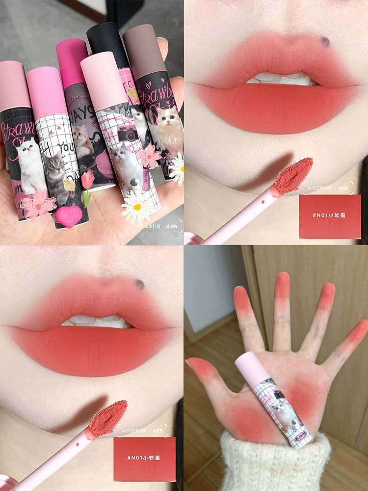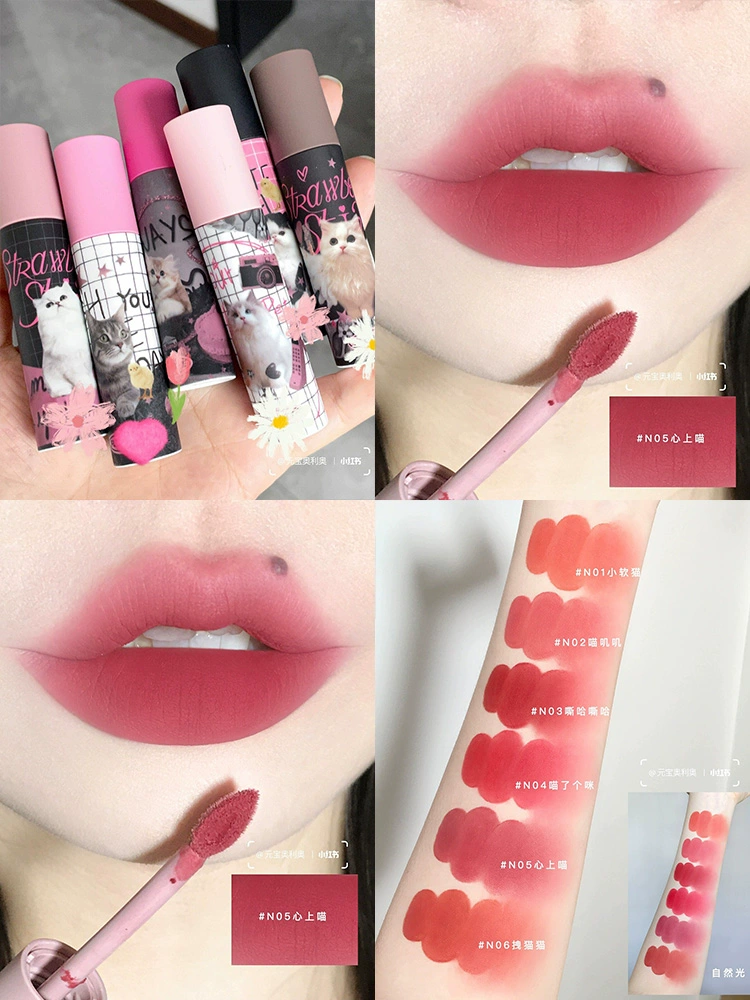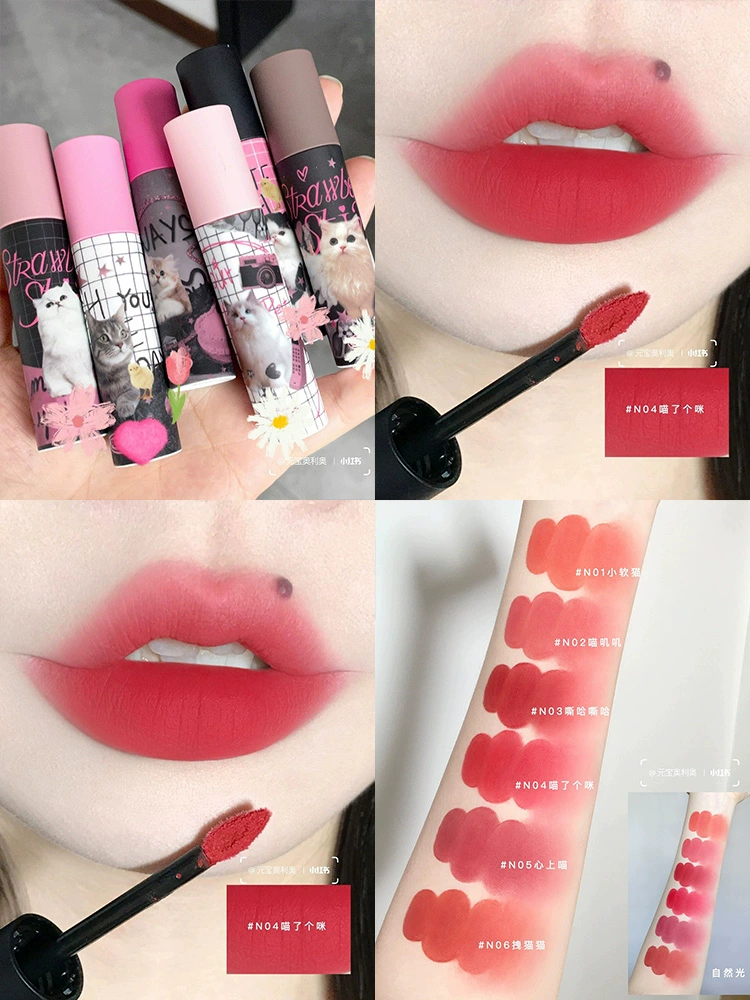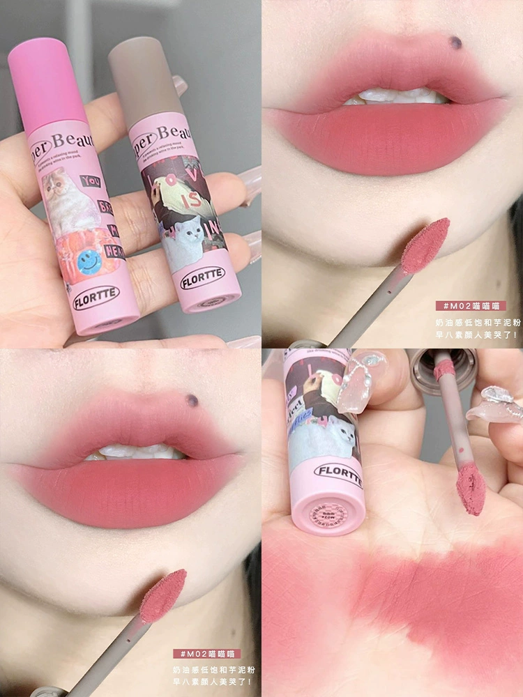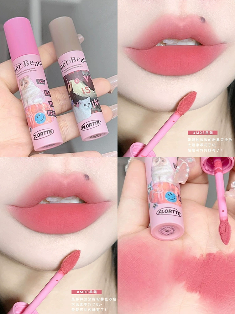 Hua Luolia milk cake lip cream matte lip glaze 03 Apple skin lip mud, nude lip, bottoming, flower lipstick