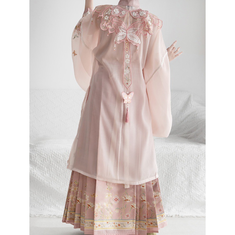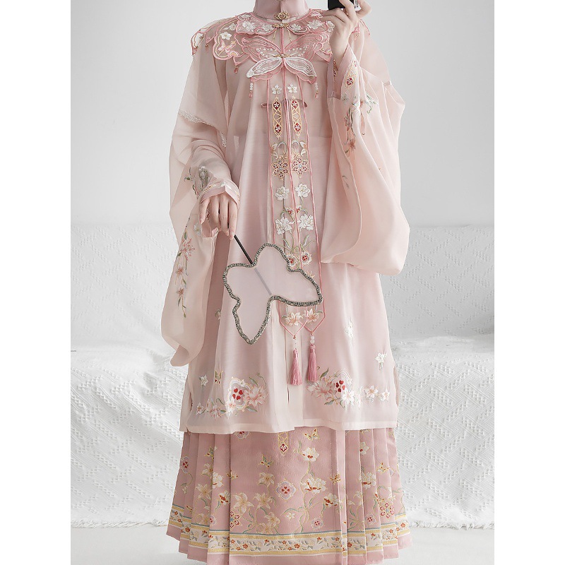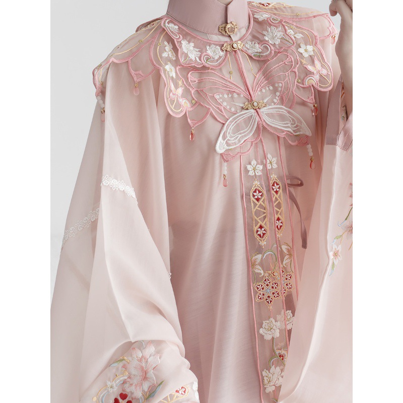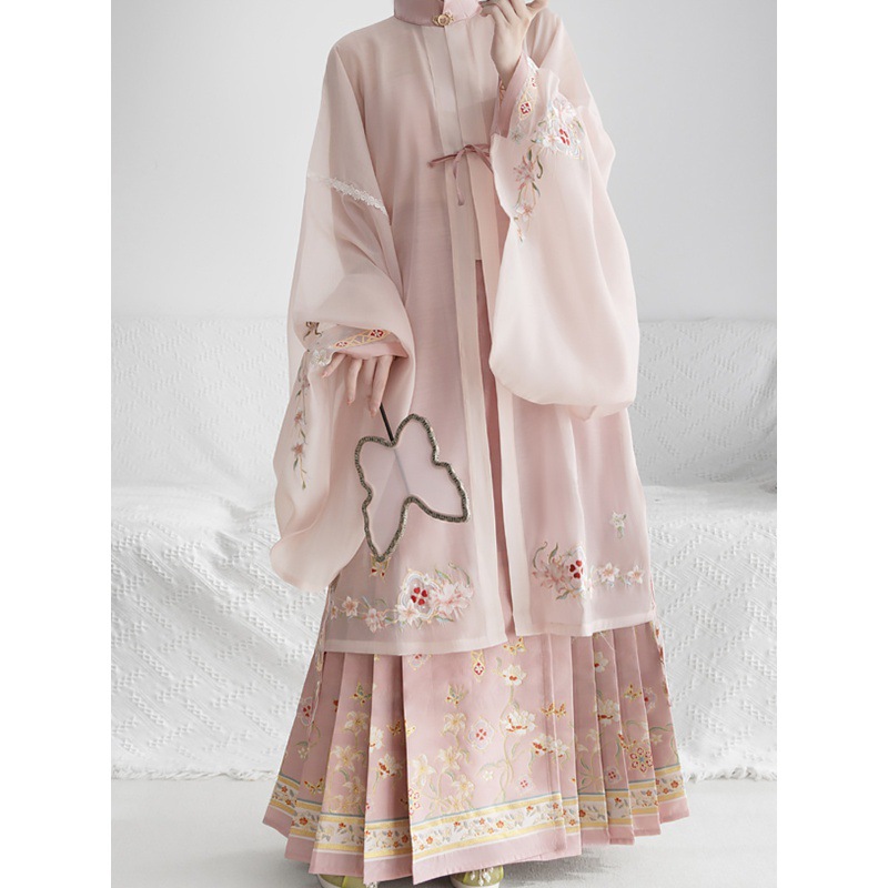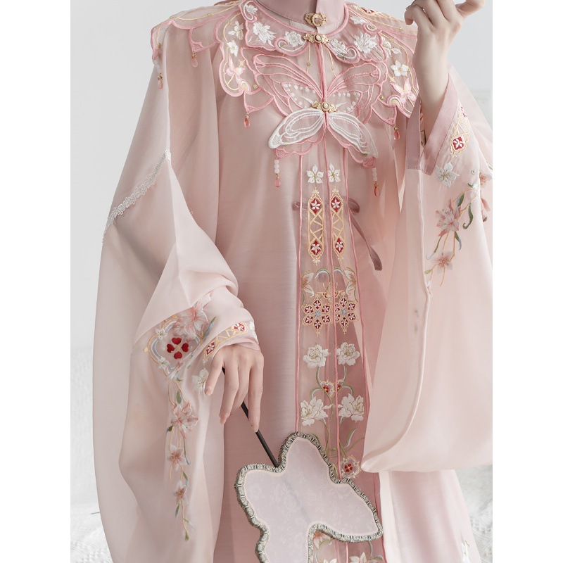 Huamisheng Original Hanfu Women’s Ancient Dress Pink Ming Cloud Shoulder Collar Pair Long Shirt Chinese Style Spring and Summer Dress