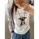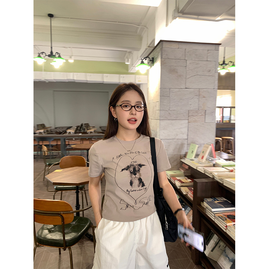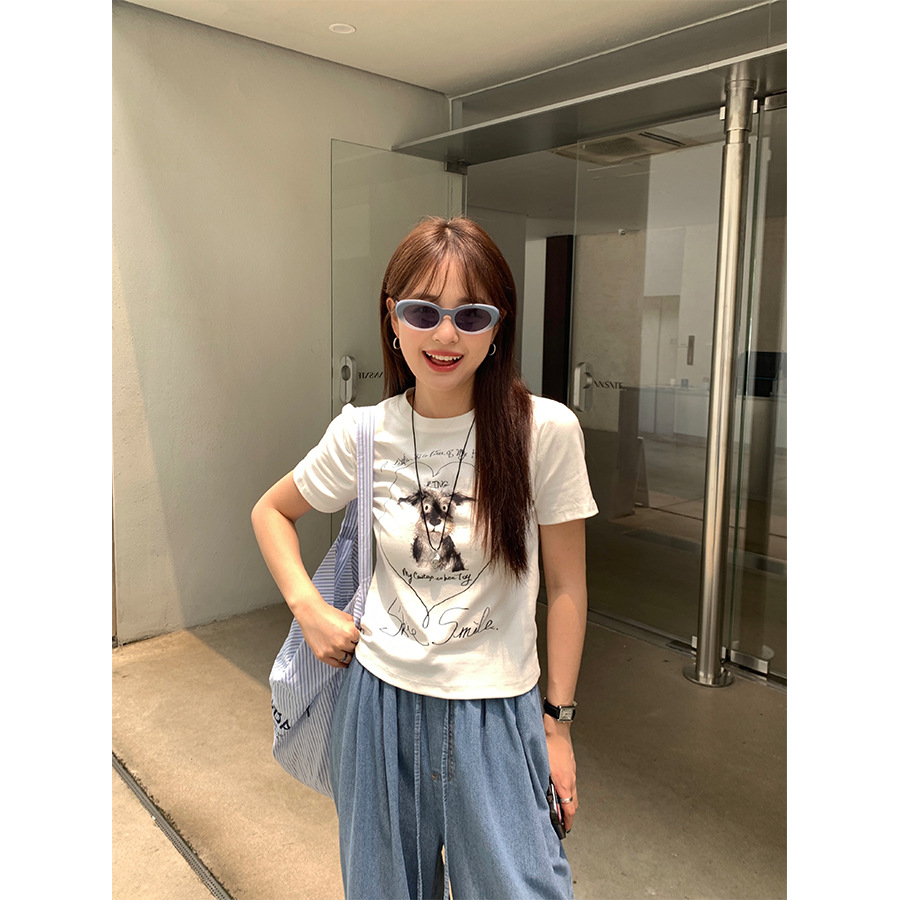 | nameOriginal | Huang Zheng Design Sense Cartoon Age-reducing Printed Short-sleeved T-shirt Women's 2024 Summer Slim Shoulder Top 142TH366 |