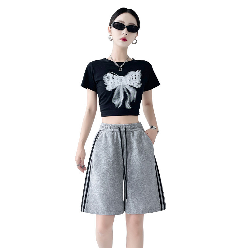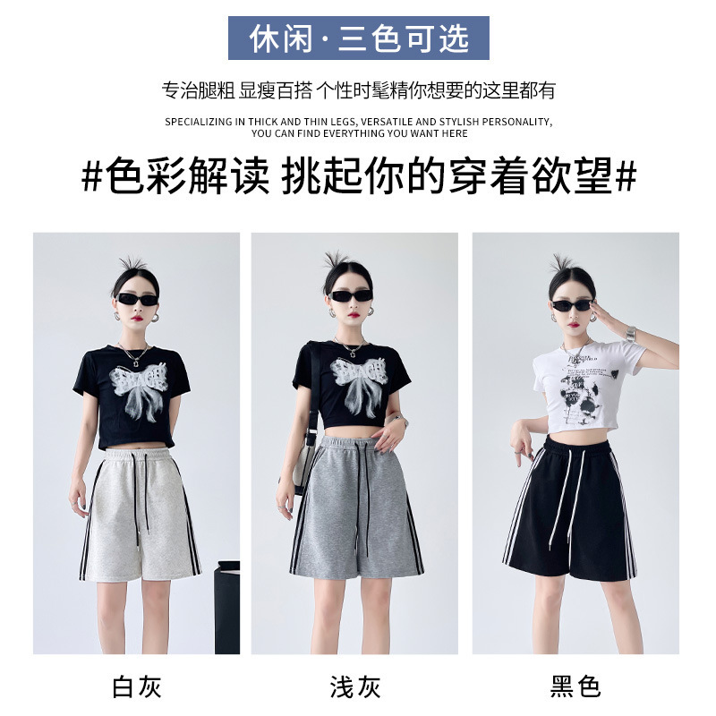 | nameOriginal | Huapian Sports Triple Bar Five Shorts Women's 24 Summer New Casual High Waist Loose Straight Wide Leg Sports Pants |