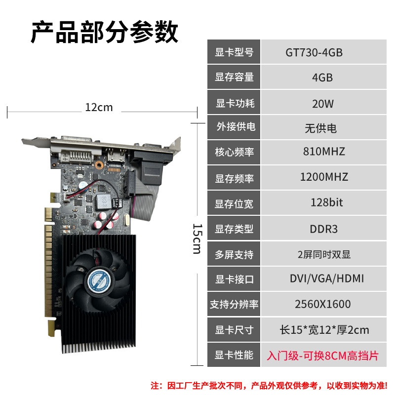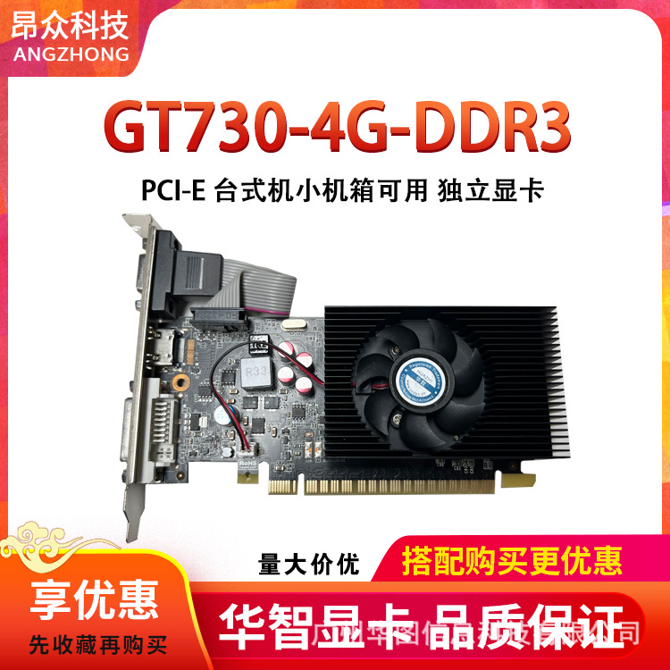 | nameOriginal | Huazhi new packaging GT730 4G DDR3 small game half-height dual screen display small chassis graphics card warranty for 2 years |