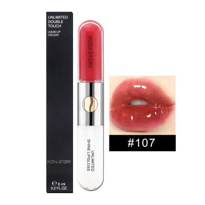 HUDA STORY cross-border makeup 12-color double-headed lip gloss lip oil non-stick Cup lip glaze durable waterproof factory wholesale