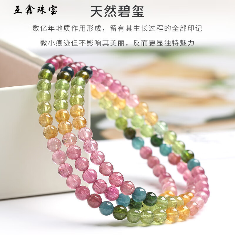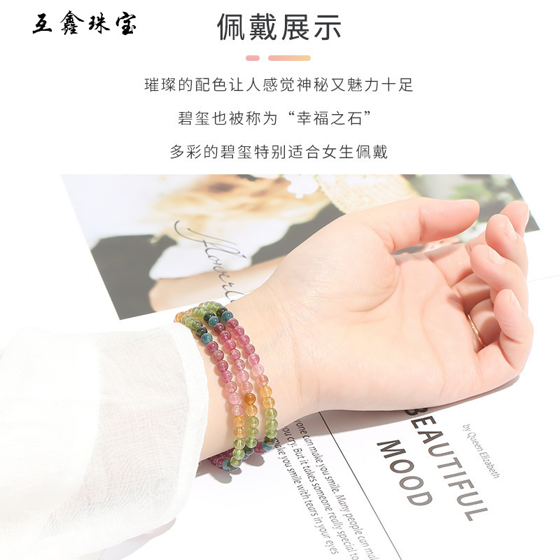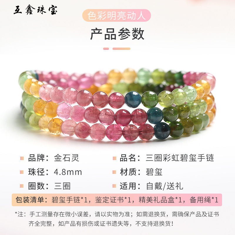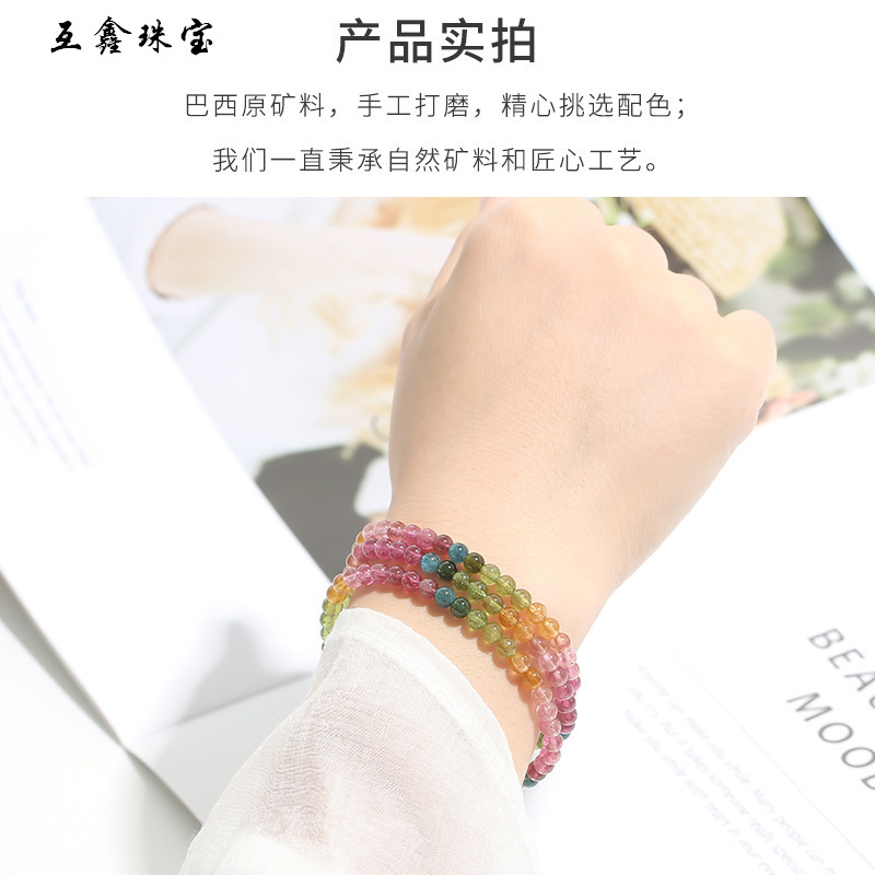 | nameOriginal | Huexin rainbow tourmaline bracelet crystal bracelet women's three-circle multi-circle colored gem |