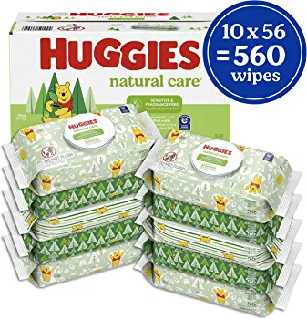 Huggies Natural Care Sensitive Baby Wipes – Unscented, Hypoallergenic, 560 Wipes in 10 Packs.