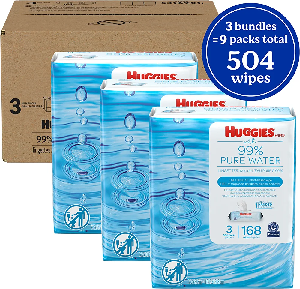 | nameOriginal | Baby Wipes, Huggies 99% Pure Water Baby Diaper Wipes, Unscented, 9 flip-top packs (504 Wipes Total) |