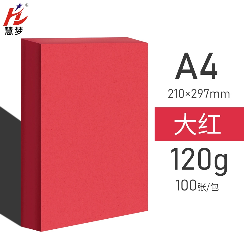 | nameOriginal | Huimeng A4 color copy paper color paper painting paper cutting black white card art special 120G red cover paper handmade cardboard thick cover cover 210*297 hard cardboard printing paper 100 sheets |