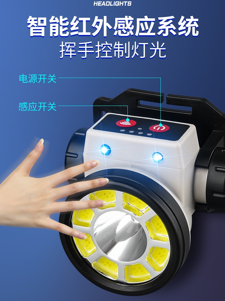| nameOriginal | Hunting Skyhawk dual light source far and near headlight strong light remote sensing head-mounted super bright charging fishing TYPEC charging |