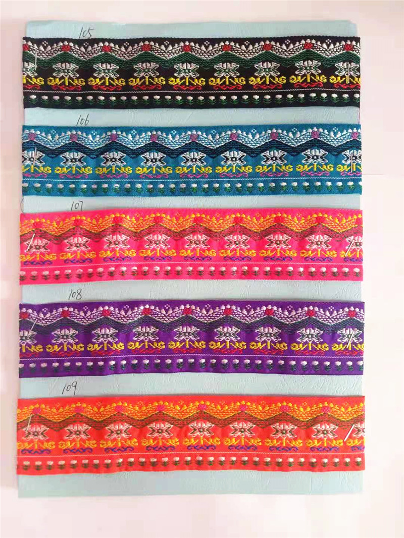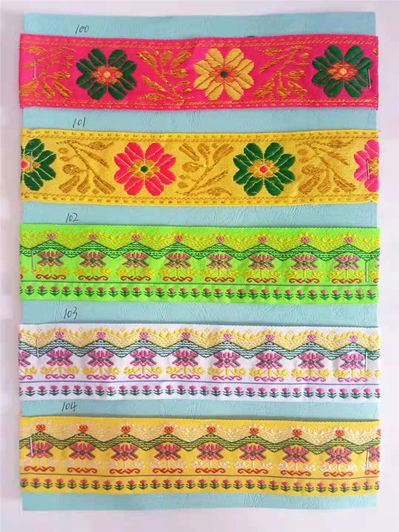 | nameOriginal | Huzhou Yuxing factory sales ethnic style warp and weft jacquard ribbon colorful polyester exquisite clothing accessories ribbon |