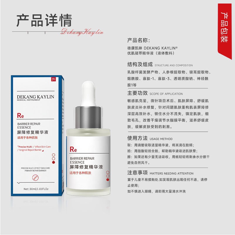 | nameOriginal | Hyaluronic acid facial repair liquid sensitive skin red relieving soothing delicate pores hydrating moisturizing skin essence |