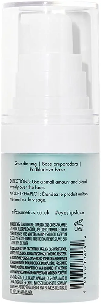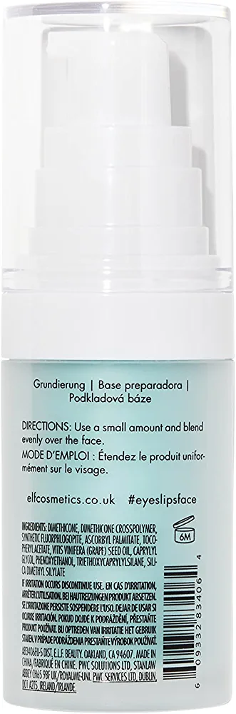 | descriptionOriginal | Description The perfect makeup starts with the perfect primer. Made with grape and Vitamins A, C, and E, our hydrating primer gives you a smooth, flawless canvas for long-lasting makeup application. Great for illuminating your skin and minimizing pores prior to applying cosmetics. elf Cosmetics offers a complete line of vegan and cruelty-free makeup and professional tools—all at an extraordinary value price, so there is sure to be something for everyone. See bullets and images for more information. |