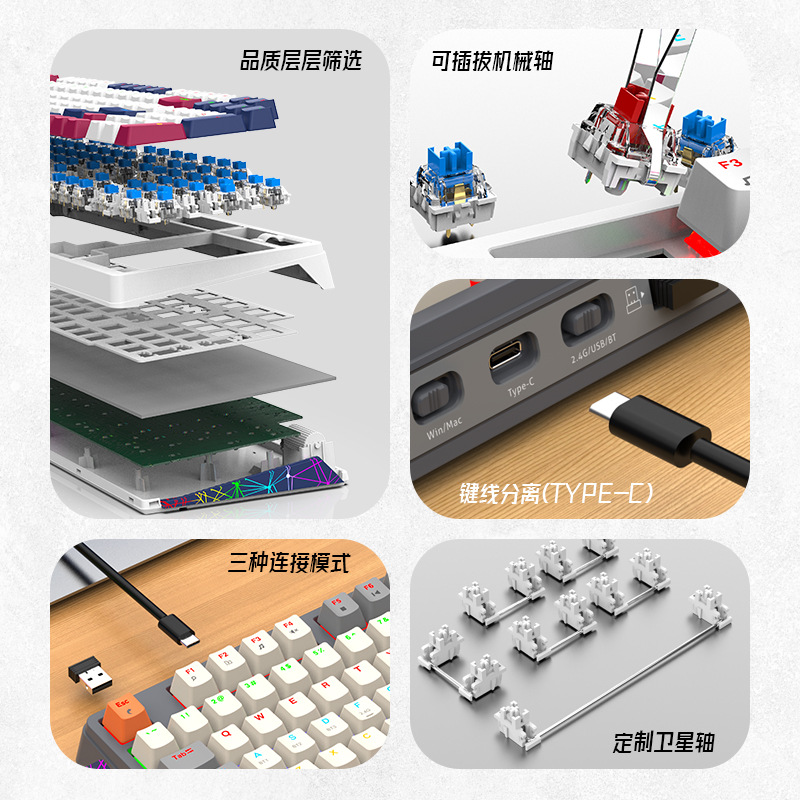 | nameOriginal | Hyun Silver Fox K95 Mechanical Keyboard Wireless 2.4G Bluetooth Three-Mode Hot Plug Guest Game Gasket Structure Key |