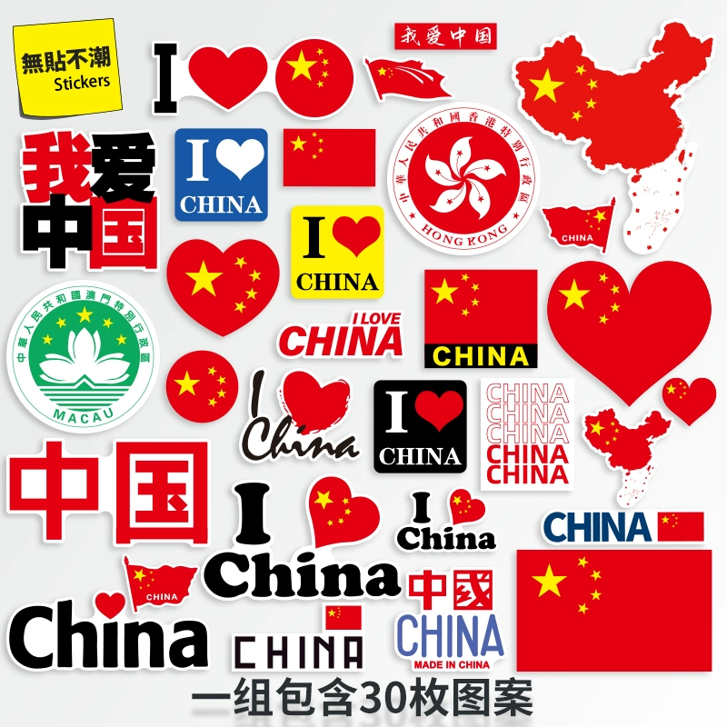 I love China flag suitcase Hong Kong regional flag sticker map suitcase laptop mobile phone waterproof