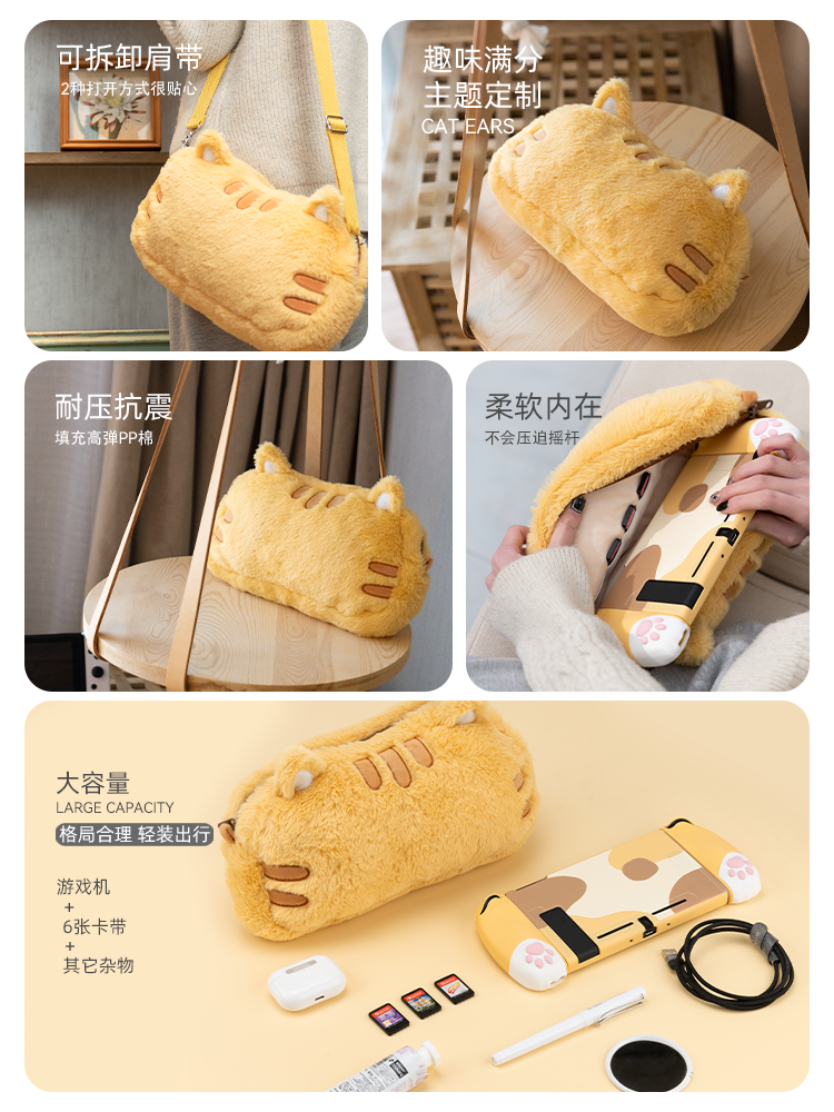 | nameOriginal | I really want cute big-faced cat switch storage bag oled cartoon plush bag crossbody bag female large capacity shoulder bag shoulder bag niche design game cassette data cable storage bag accessories |