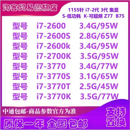i7 2600 2600S 2600K 2700K 3770 K 3770S 3770T 1155-pin quad-core CPU