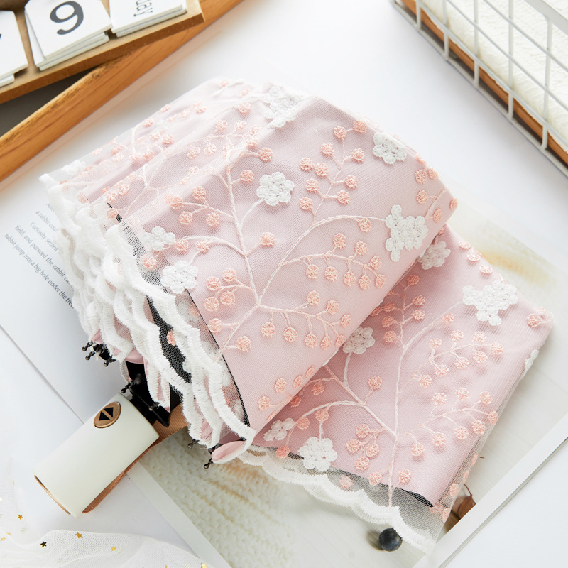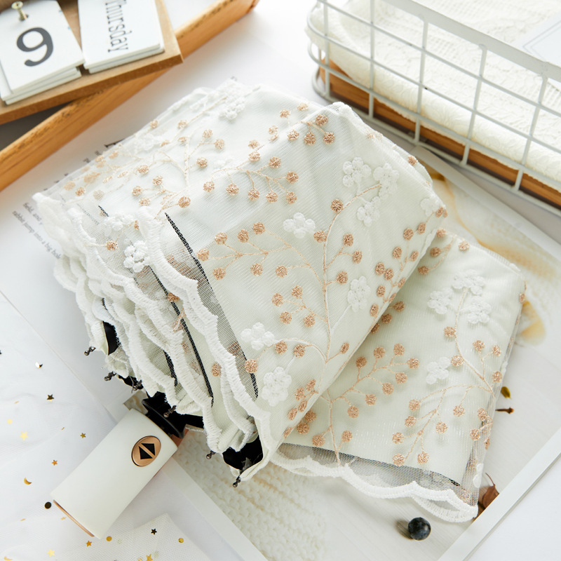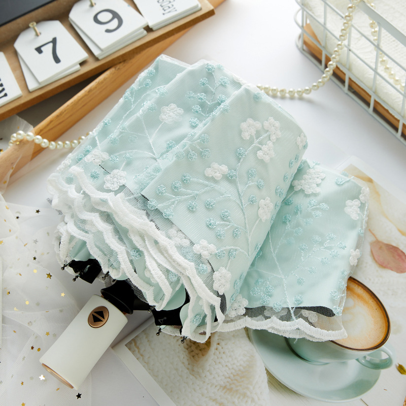 I9EK real double-layer embroidered automatic lace sun umbrella Sun Shade UV protection folding umbrella for women rain and rain dual-use