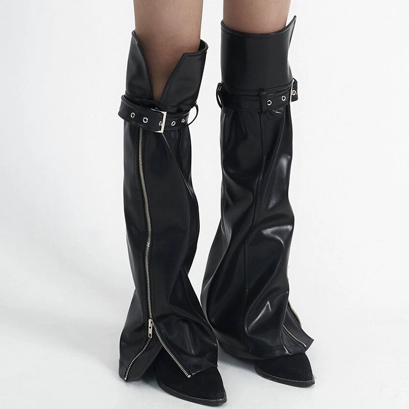 IAEY Metal Buckle Slit Leather Millennium Style Leg Wraps