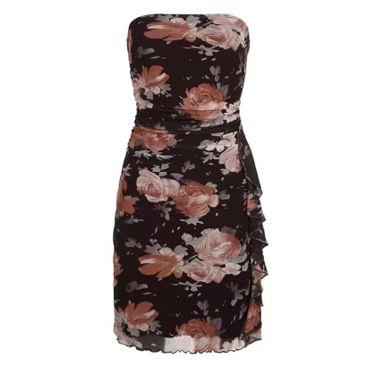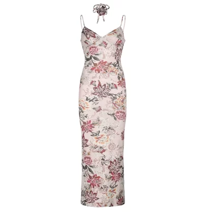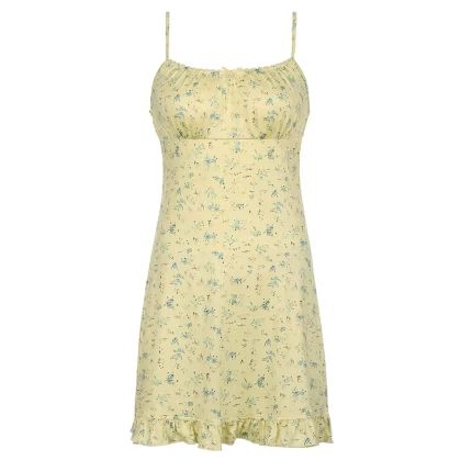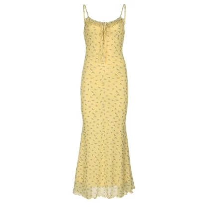 | nameOriginal | IAEY resort style yellow floral wood ear strap mesh dress hot girl sexy beach backless skirt |