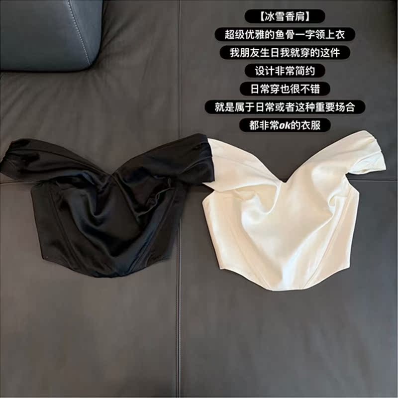 [Ice and Snow Shoulder] Fish bone sexy shoulder shoulder short shirt is pure desire to slim out the tube top summer
