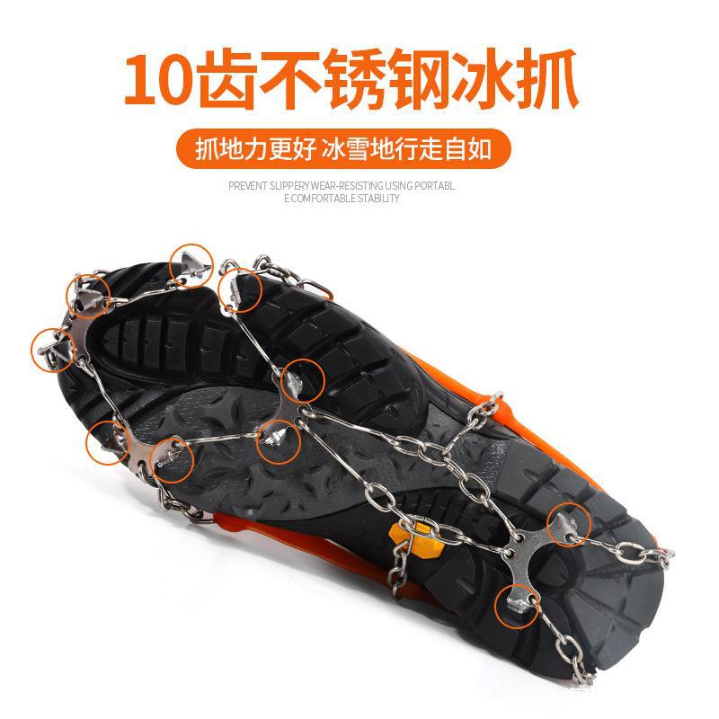 Ice Claw Non-slip Shoe Cover Snow 10 Tooth Spike Chain Ski Road Anti-fall Ice Grab Shoe Cover Chain Outdoor Climbing Snow Claw