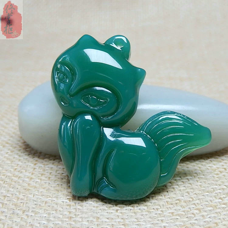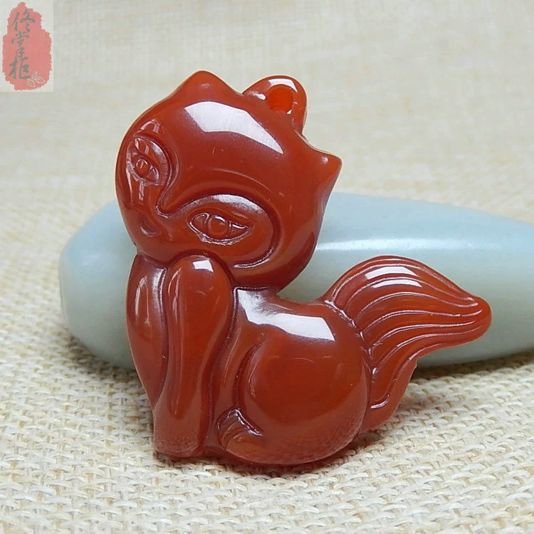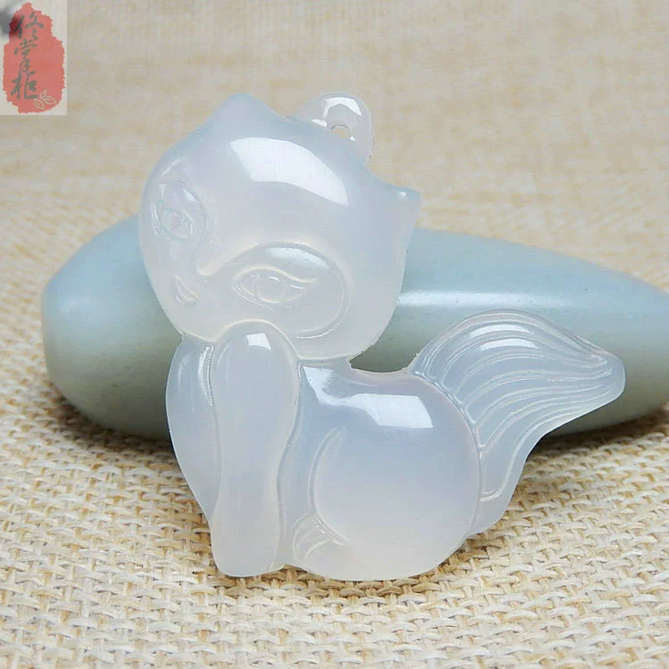 Ice color fox pendant for women natural agate chalcedony multi-color small fox jade pendant for men and women jade necklace pendant