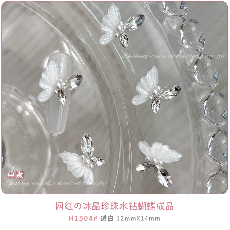 | nameOriginal | Ice crystal butterfly nail art diamond jewelry 2024 new transparent white pink flower ice butterfly finished alloy nail diamond flash |