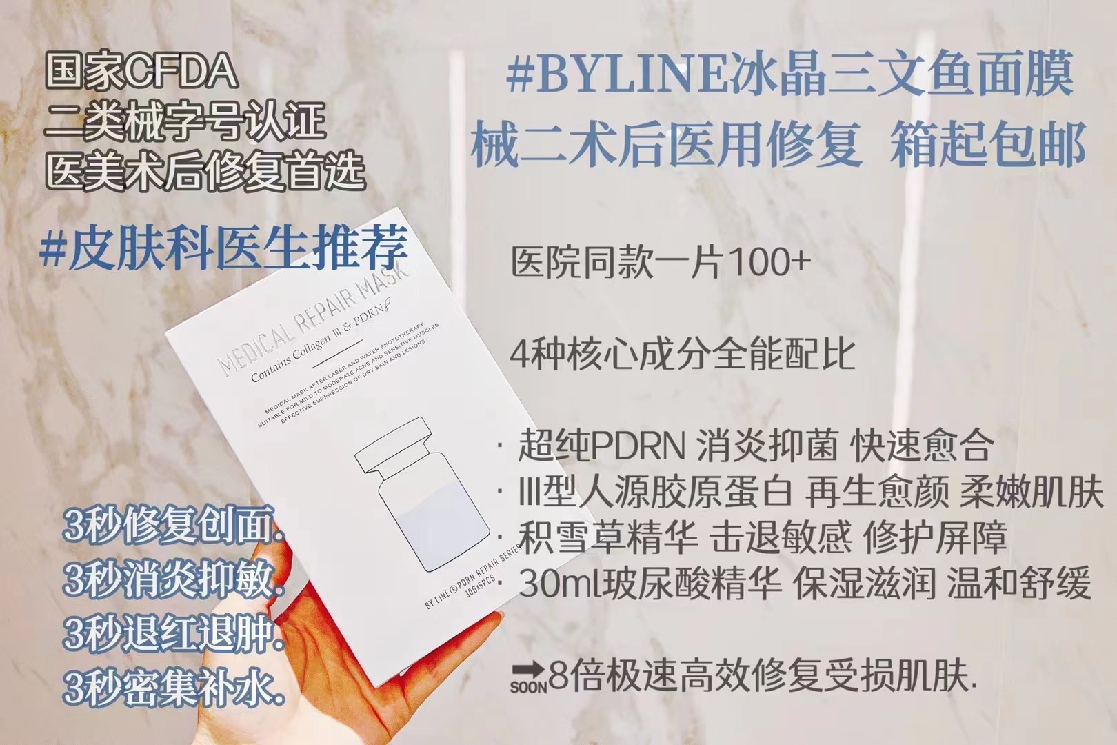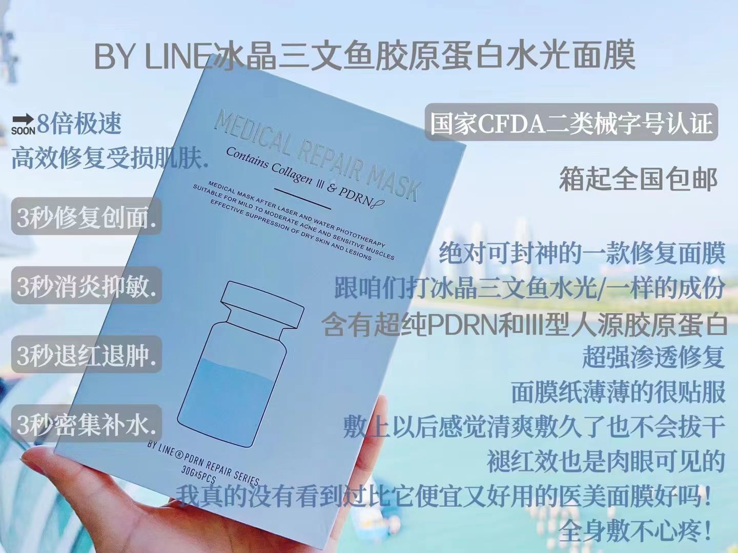 | nameOriginal | Ice Crystal Salmon Mask PDRN Repair Dressing Hydrating and Moisturizing Sensitive Muscle Redness and Swelling Water Light Postoperative Repair |