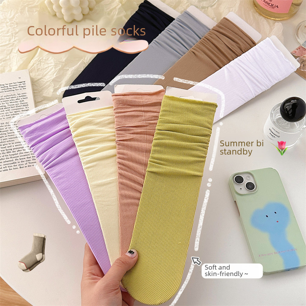 Ice ice socks women's spring and summer velvet pile socks mid-tube stockings pure white long tube jk socks ins tide socks wholesale