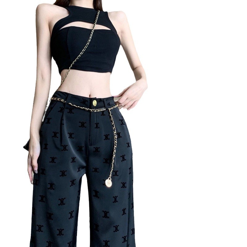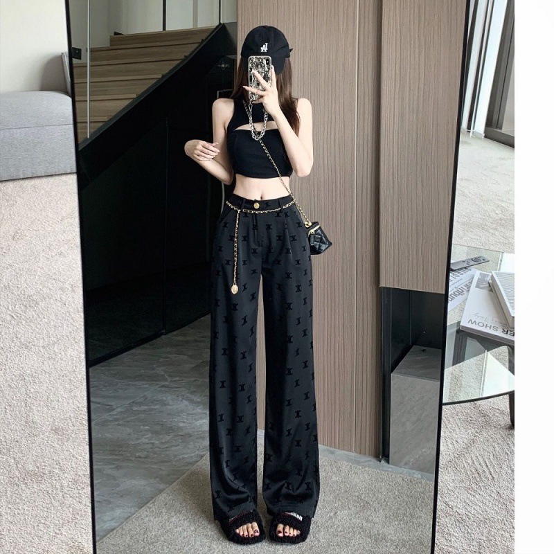 | nameOriginal | Ice Silk Acetic Acid Wide-Leg Pants Women's Summer Thin High Waist Slim Look Black Casual Pants Sling Pants |