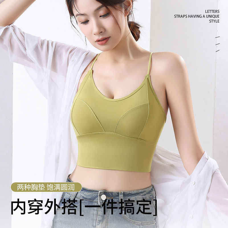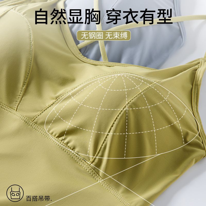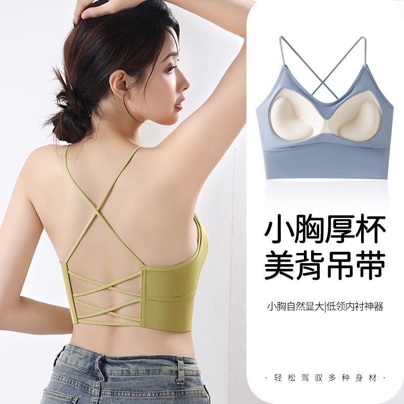 Ice Silk Beautiful Back One-piece Fixed Cup Small Chest Thickened Wrap Chest Women’s Thin Shoulder Strap Hollow Tube Top Sling Vest Underwear