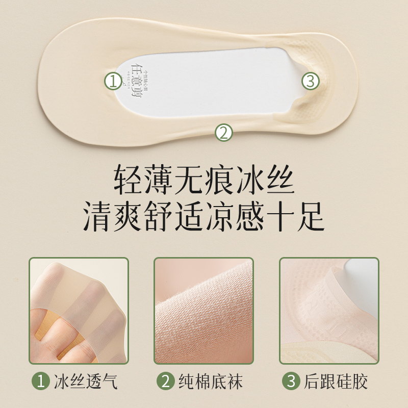 Ice Silk boat Socks for women spring and autumn cotton non-slip non-slip heel summer thin with high heels socks shallow mouth invisible socks