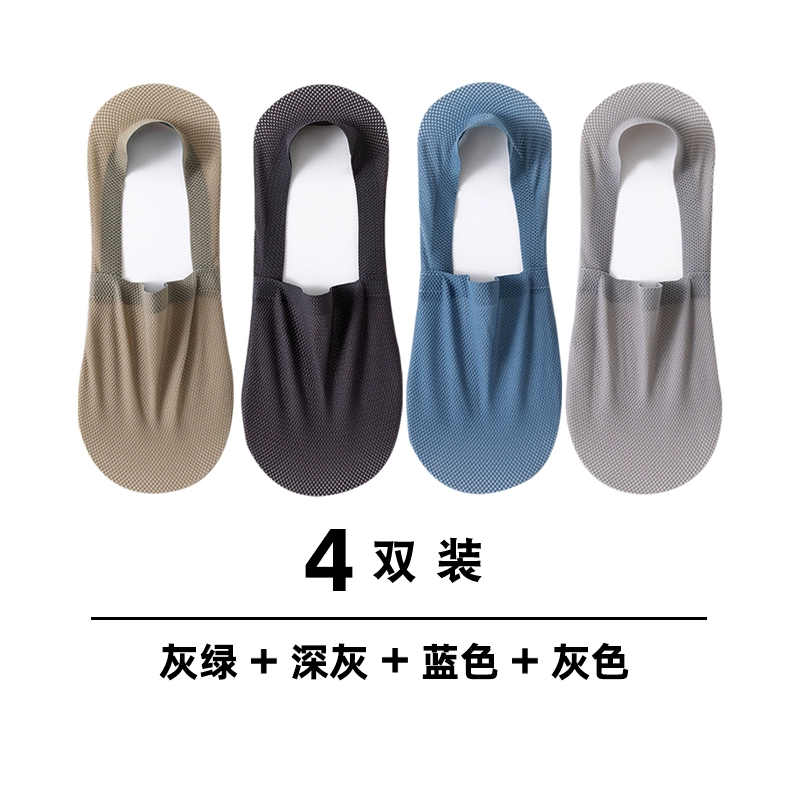 Ice silk boat socks men's summer thin non-slip non-falling socks sets pure cotton bottom socks men's short socks shallow mouth invisible socks