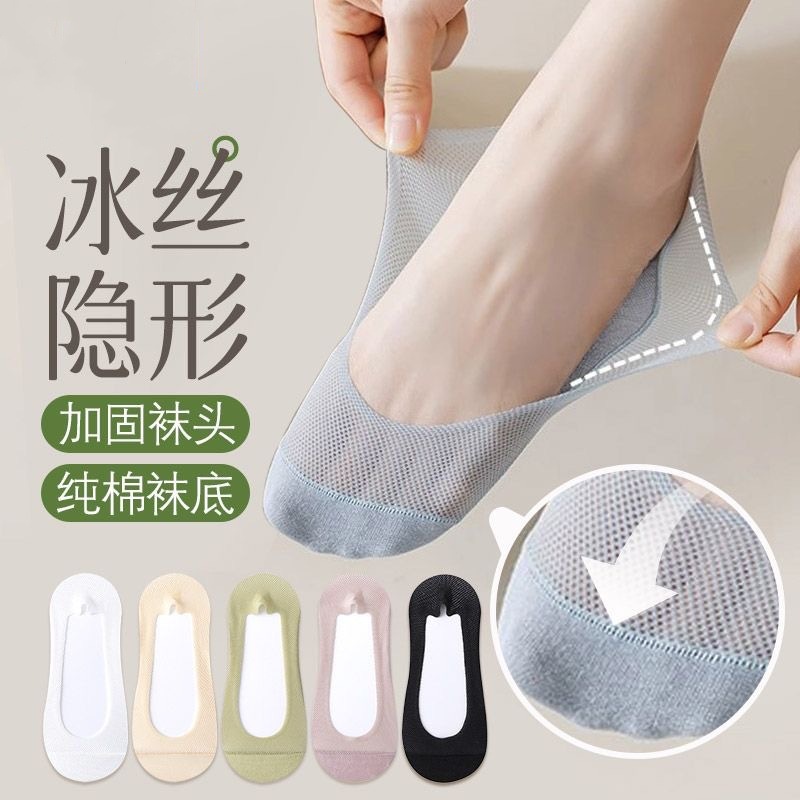 | nameOriginal | Ice Silk Boat Socks Women's Non-slip Non-falling Heel Summer Thin Pure Cotton Bottom Low-cut Shallow Mouth Summer High-heeled Socks Invisible |