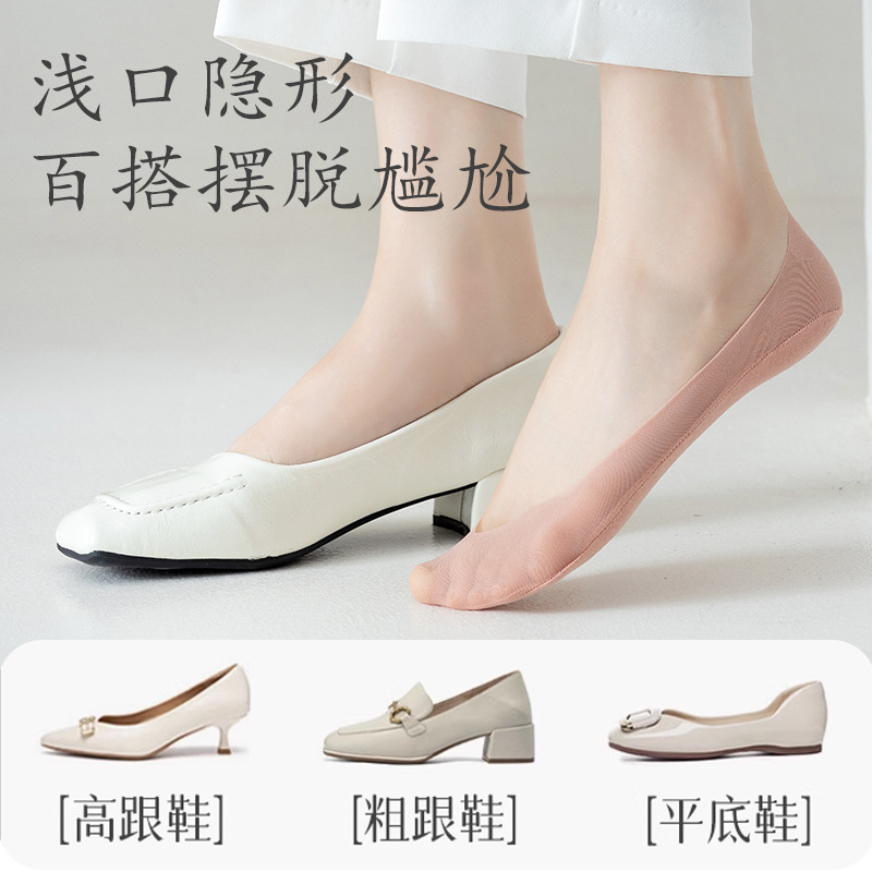 Ice Silk Boat Socks Women’s Summer Thin Pure Cotton Bottom Sweat Absorbing Breathable Non-slip Non-falling Heel Shallow Mouth Invisible High Heels Socks