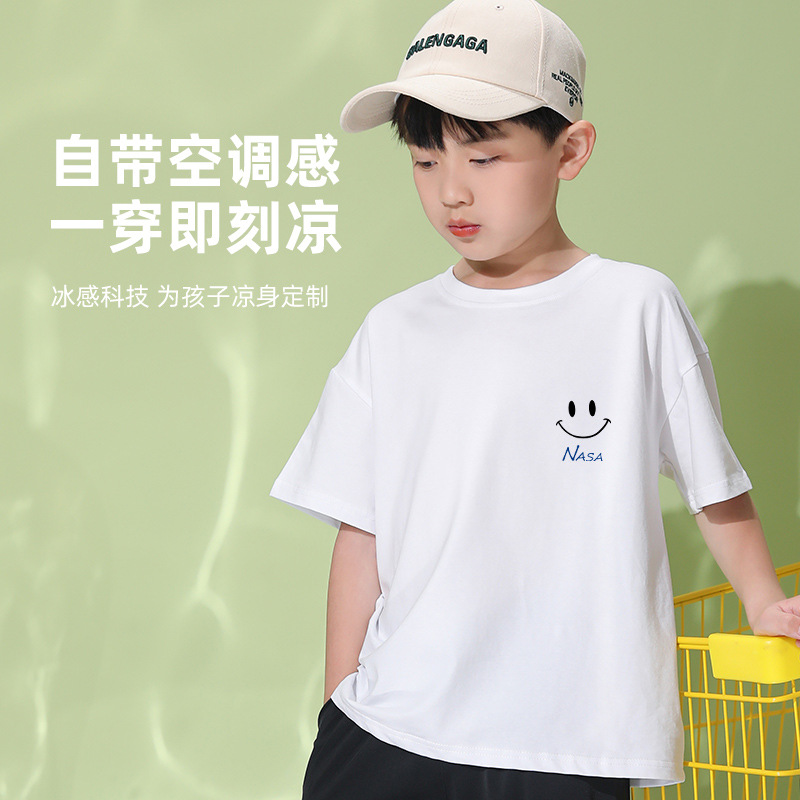| nameOriginal | Ice silk boys white T-shirt short sleeve 2024 summer new ruffian handsome big children's T-shirt half sleeve tide brand children's clothing wholesale |
