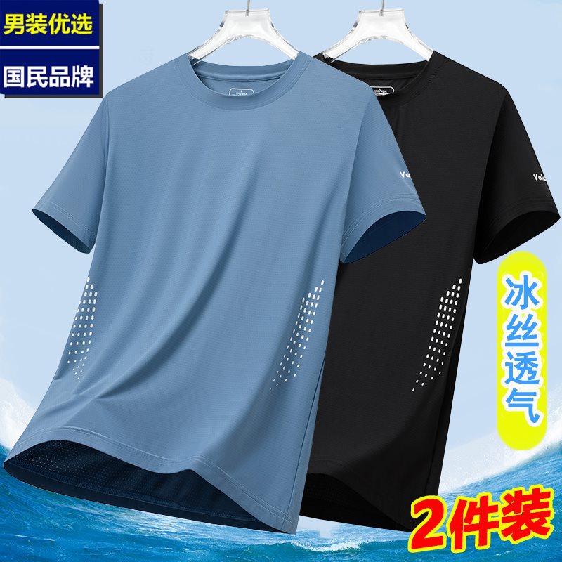 Ice Silk Breathable [2 Pack] Summer Mesh Quick-drying Short-sleeved T-shirt Men's Thin Sports Half-sleeved Top T-shirt