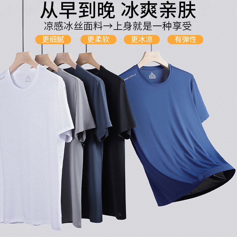 | nameOriginal | Ice Silk Breathable Summer New Style Cool Crewneck Top Men's Fashionable All-match Casual Sports Breathable Quick-drying plus size Men |