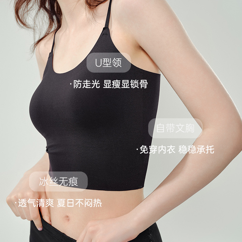 | nameOriginal | Ice Silk Camisole Women's Belt Chest Pad Inner Wear Summer Thin Beautiful Back Underwear Non-rimless Outer Wear No-trace Bra |