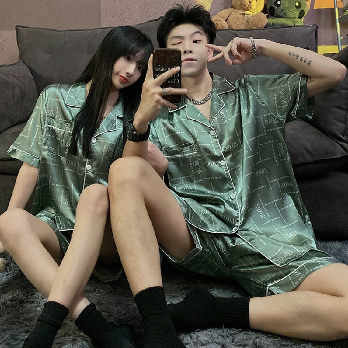 | nameOriginal | Ice silk cardigan high-end pajamas for a man and a woman couple |