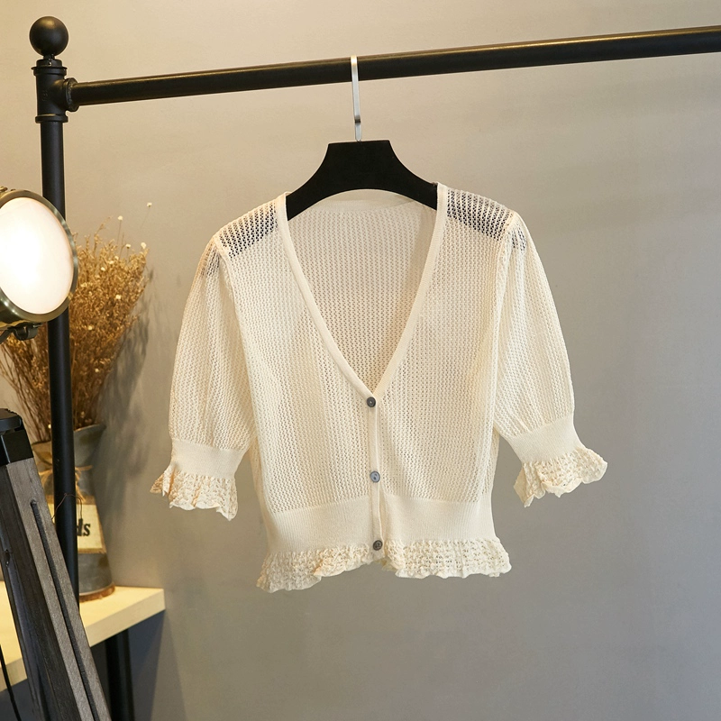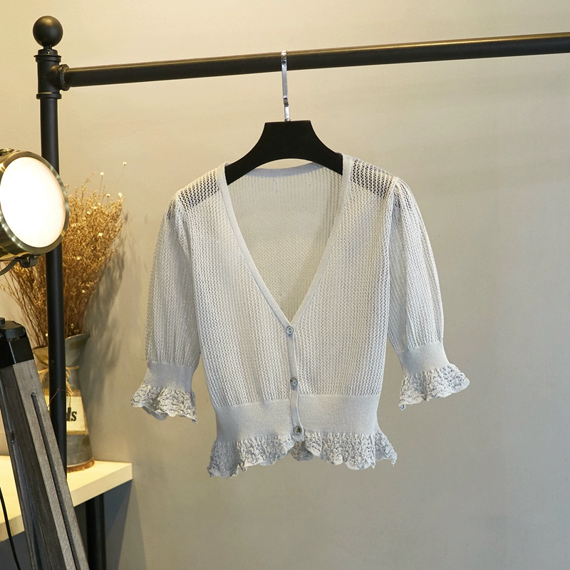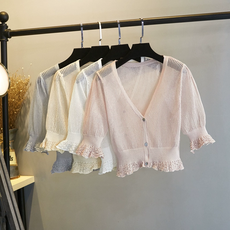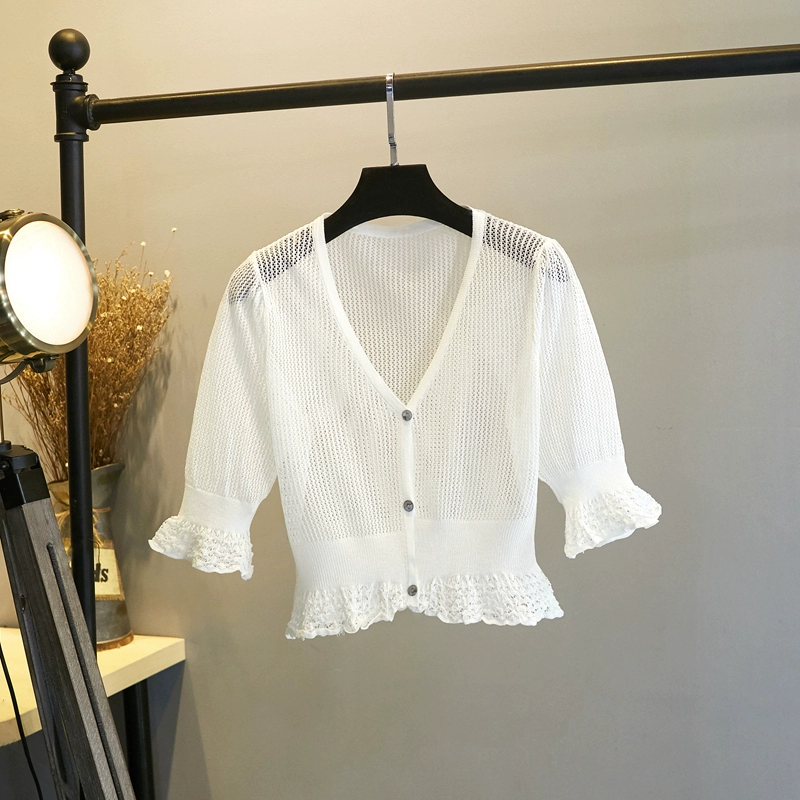 | nameOriginal | Ice Silk Cardigan Hollow Knitted Top Lace Small Jacket |