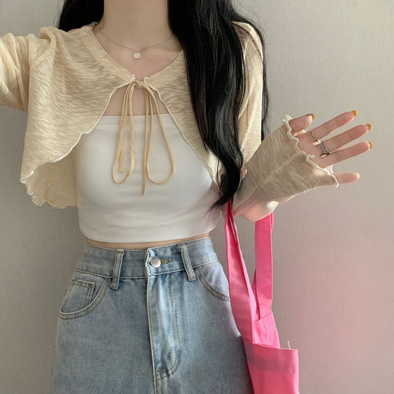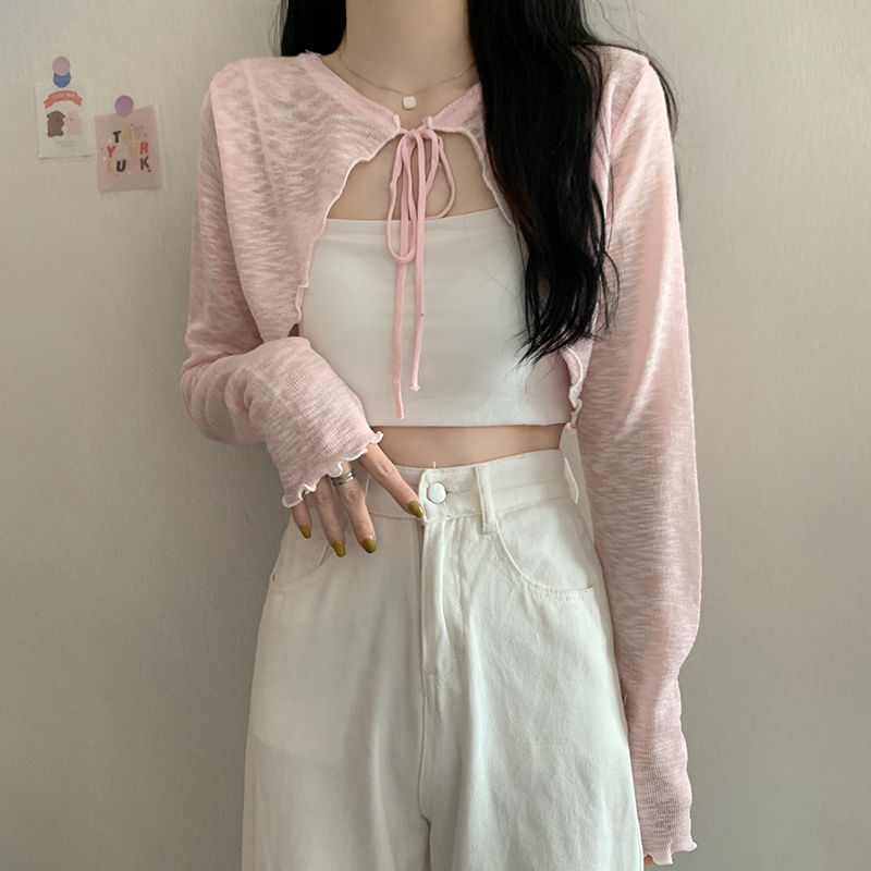 Ice Silk Cardigan Sun Protection Clothing Women’s Summer New Style Outer Wearing Thin Micro-transparent Shawl Sling Outer Wearing Blouse Short Coat