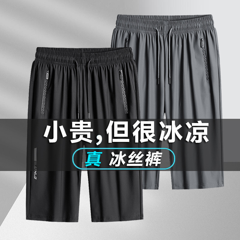 Ice Silk casual pants men’s summer thin stretch quick-drying cropped pants men’s short pants plus size loose sports pants