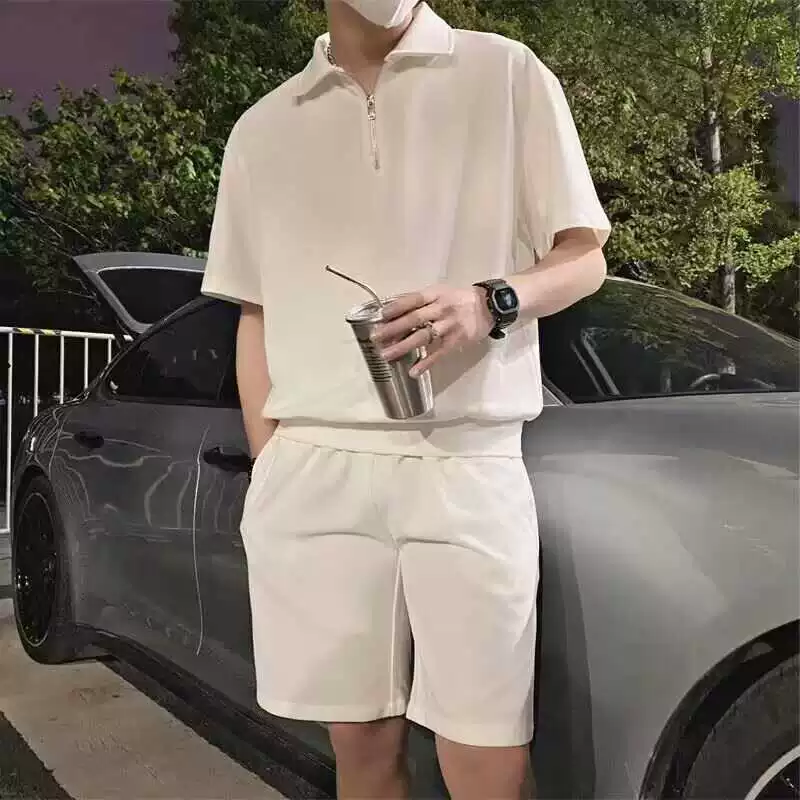 Ice silk casual short-sleeved shorts men's handsome polo shirt