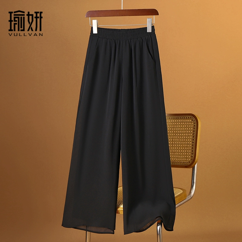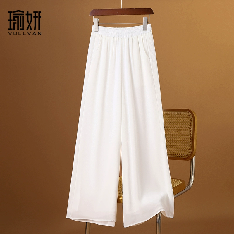 | nameOriginal | Ice silk chiffon wide leg pants for women nine-point summer thin loose pants white large size straight drape high waist casual pants |