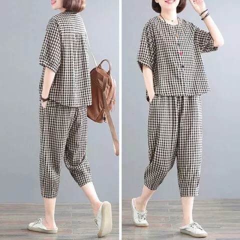 | nameOriginal | Ice silk cotton and linen slimming harem pants two-piece mother's outfit |