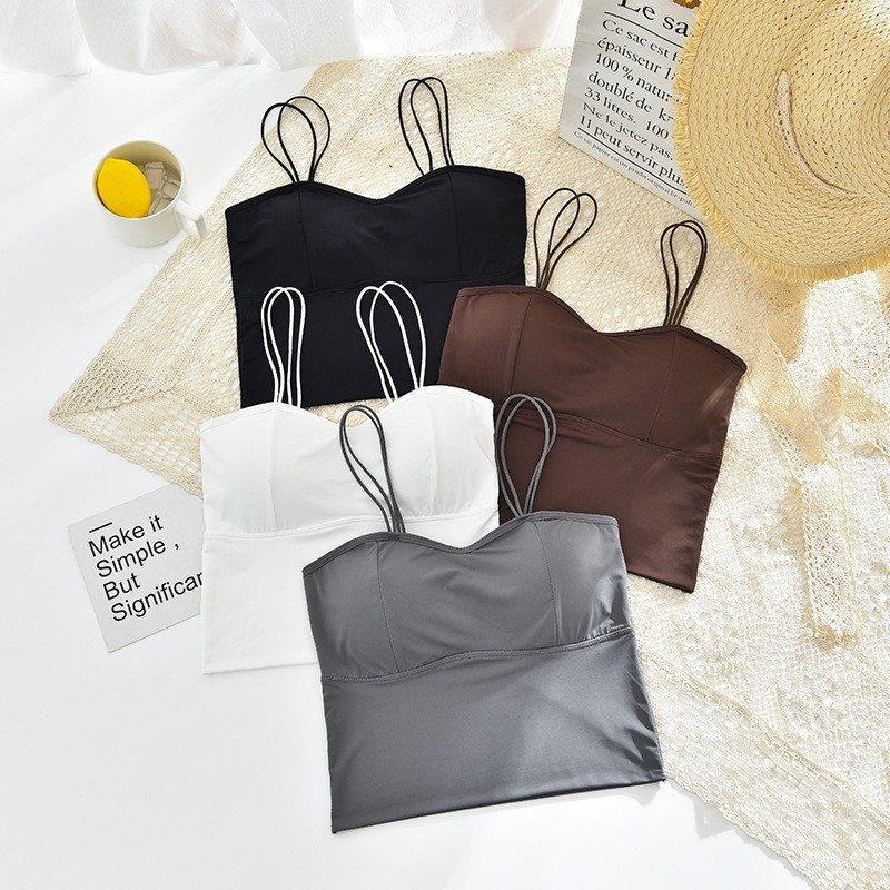 | nameOriginal | Ice Silk Double Shoulder Thin Belt Beautiful Back Camisole Vest Women's Spice Girl Outer Wear Base Sexy Large Backless Traceless Camisole Vest |