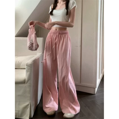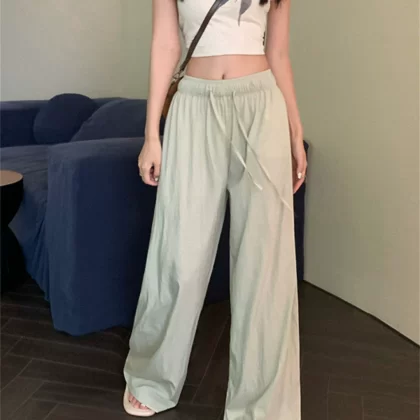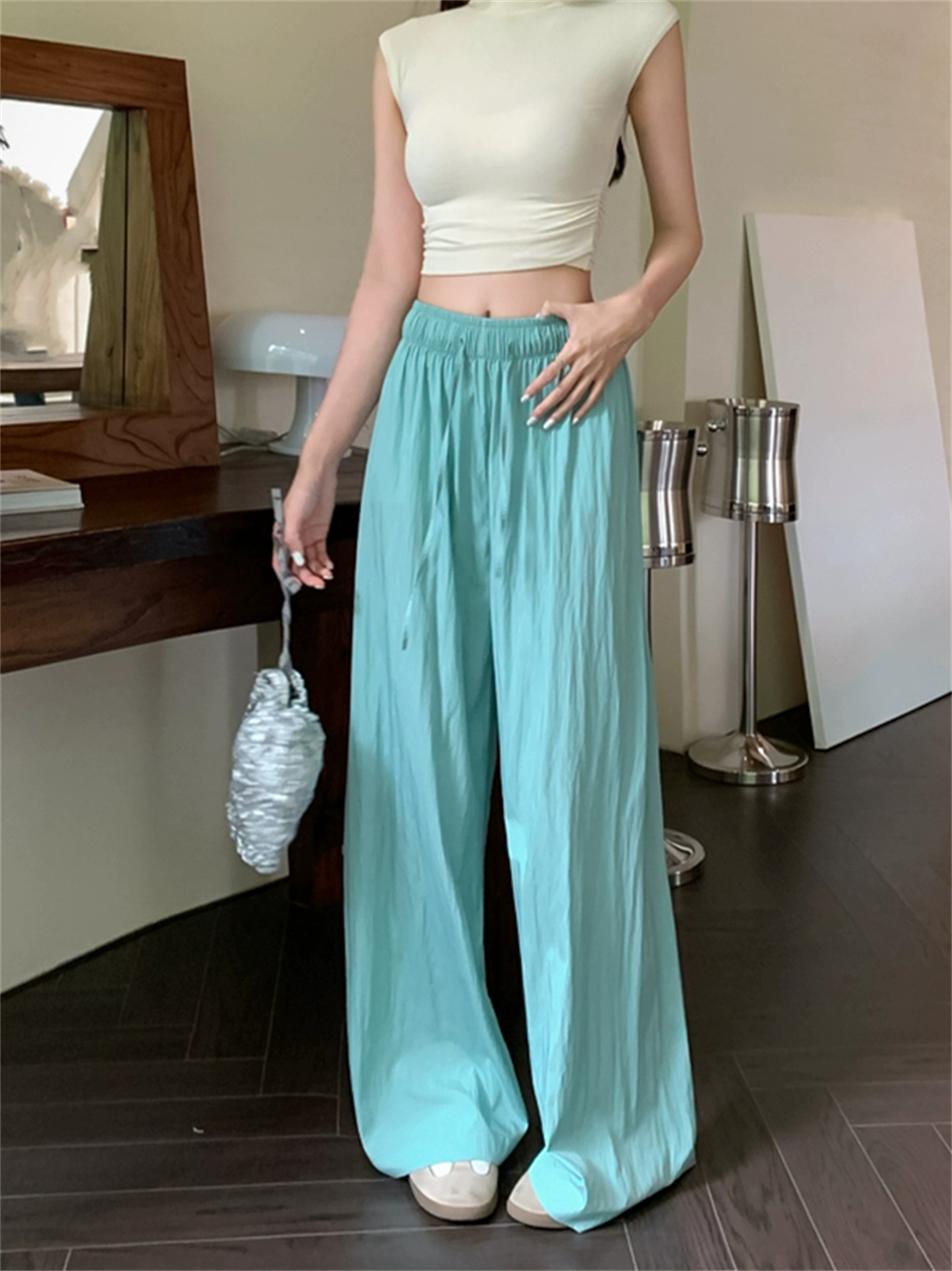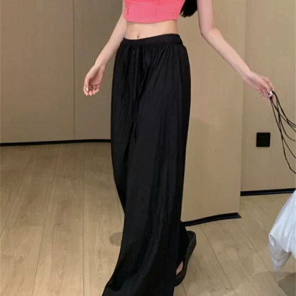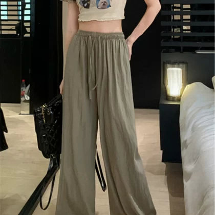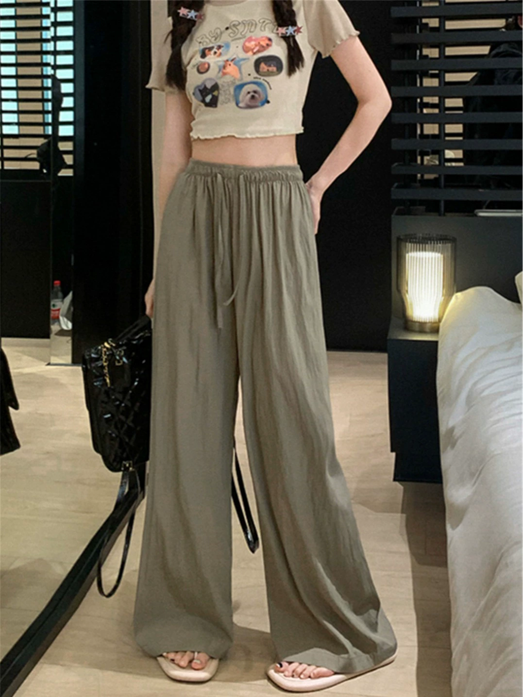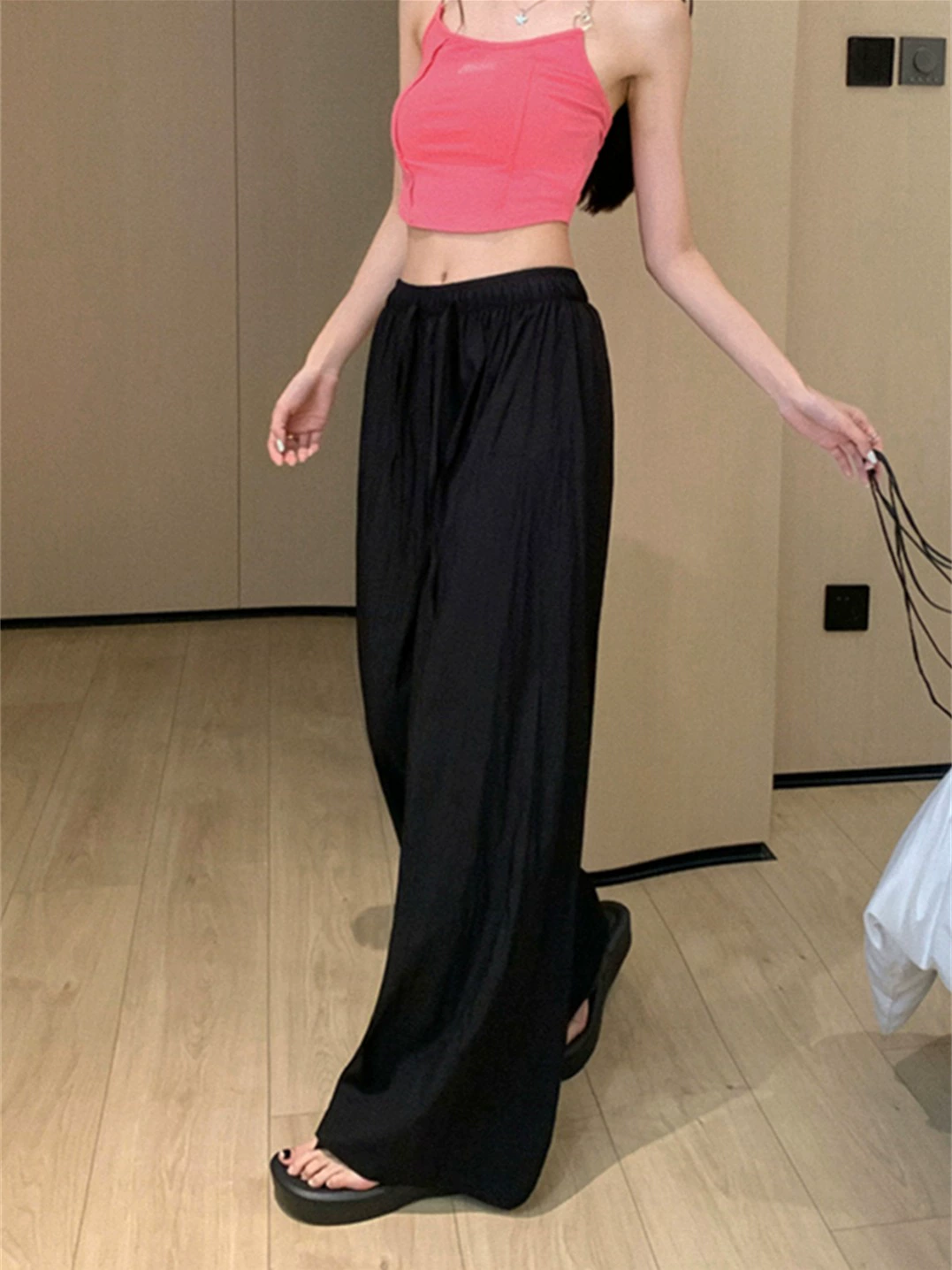 | nameOriginal | Ice silk drapey loose high waist drawstring walking casual pants |