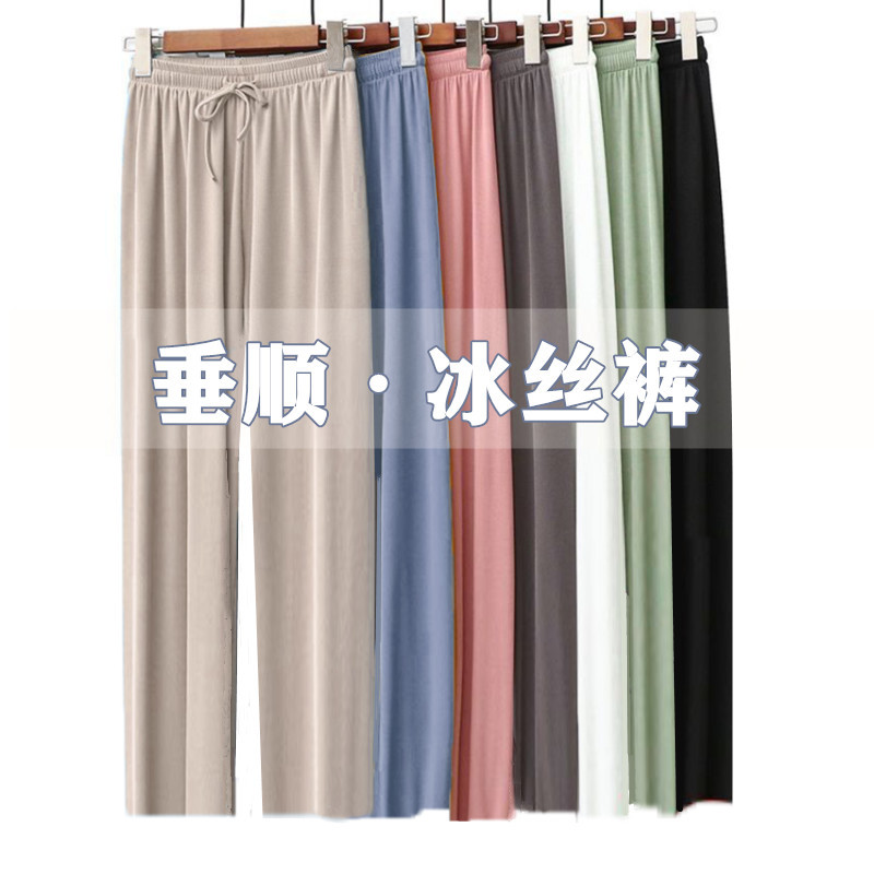 Ice Silk Dummy Wide Leg Pants Women's Summer Small High Waist Loose Straight Casual Sports Pants for Spring