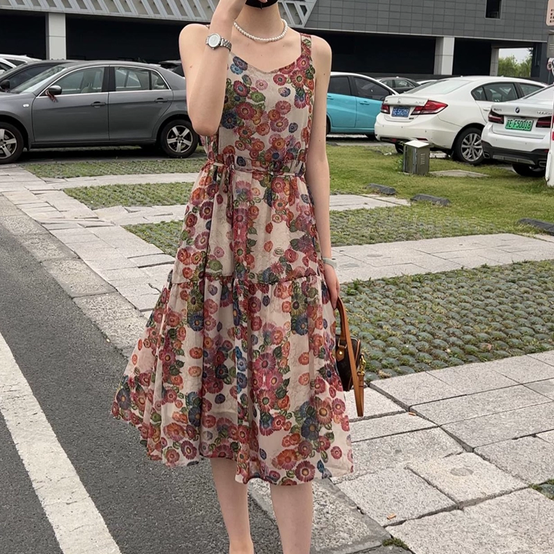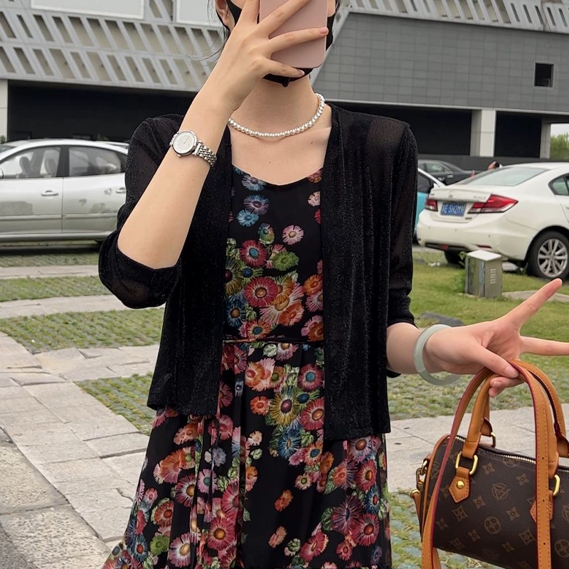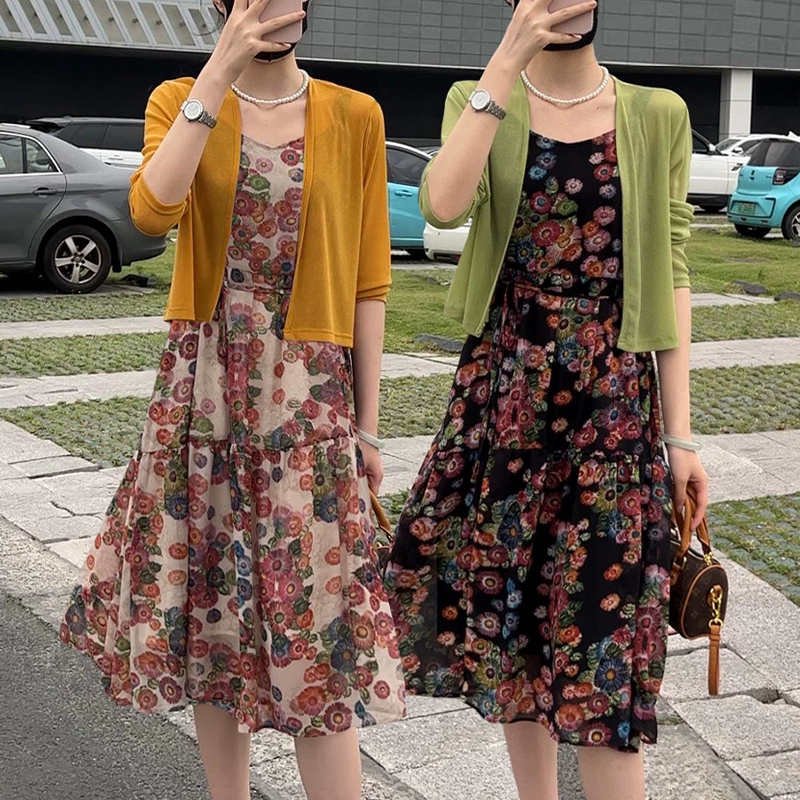 | nameOriginal | Ice silk floral suspender skirt mid-length knitted cardigan |