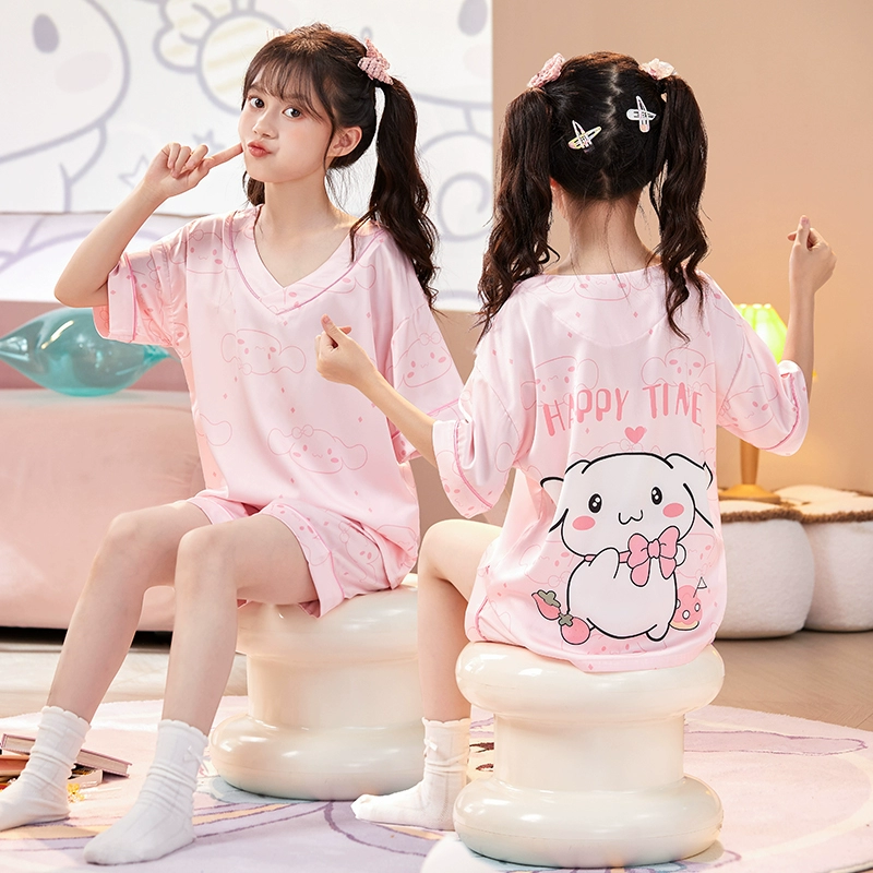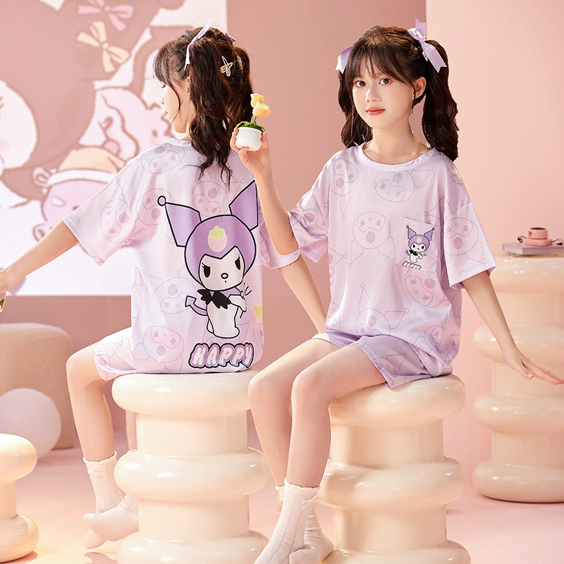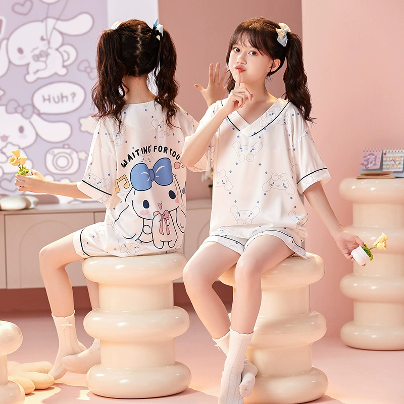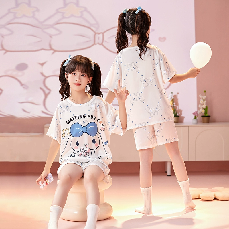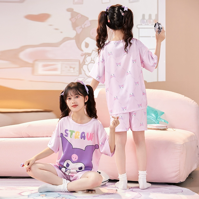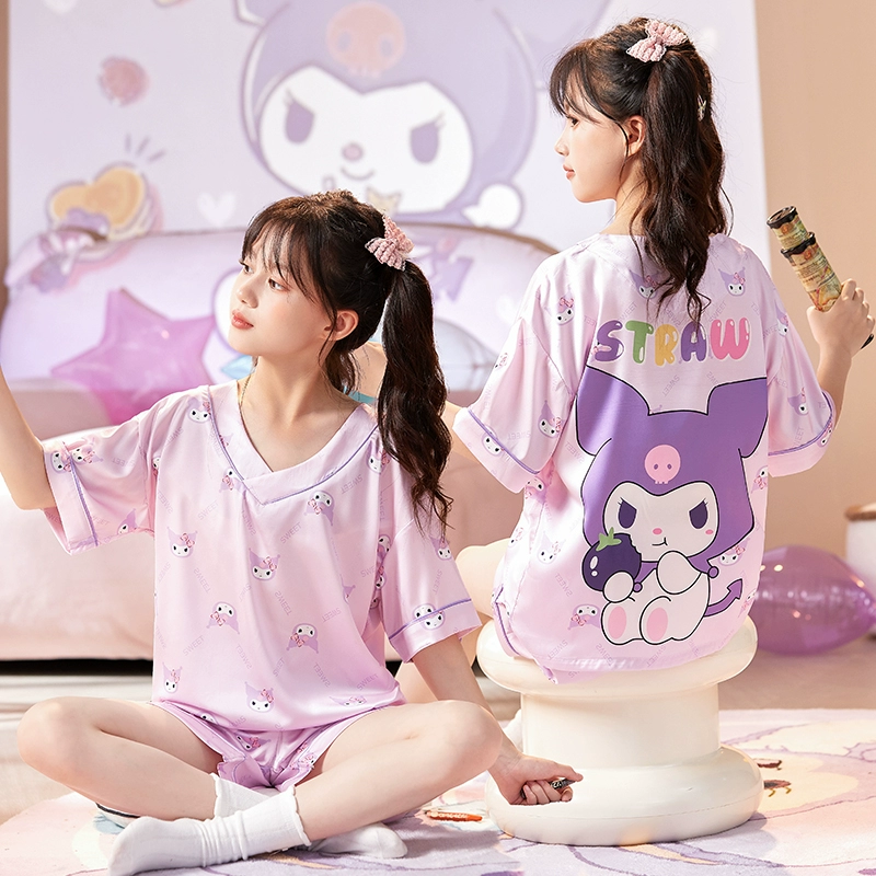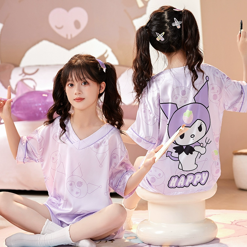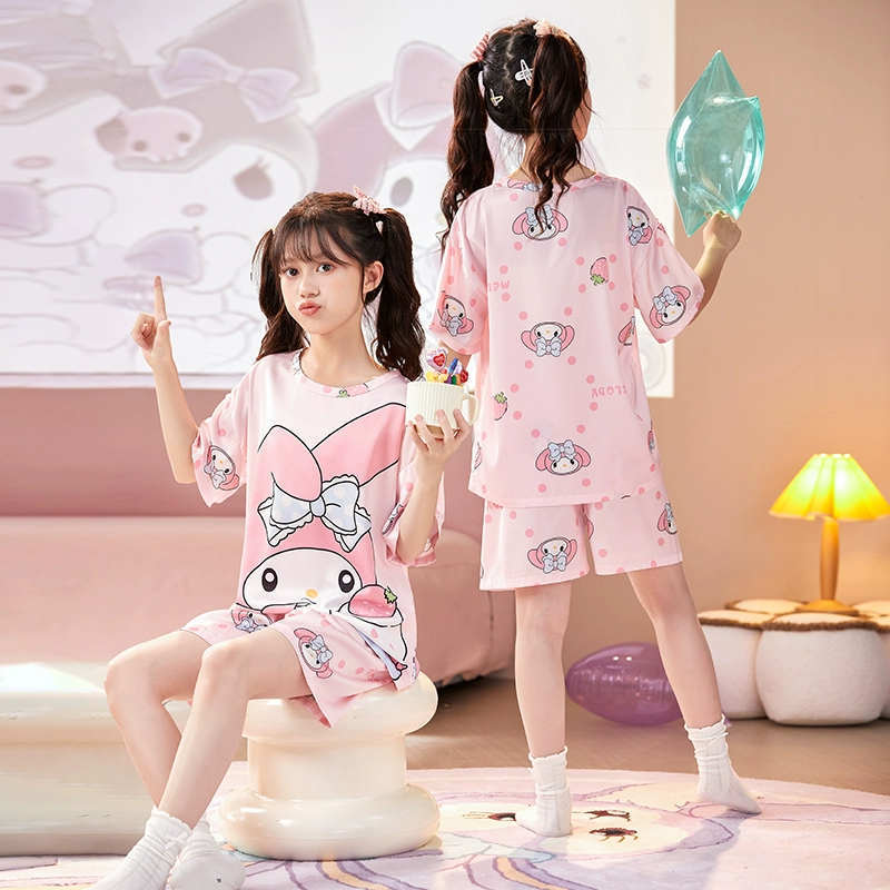 | nameOriginal | Ice silk girls' pajamas, summer thin girls' short-sleeved round neck suit, cute Melody parent-child children's home clothes |