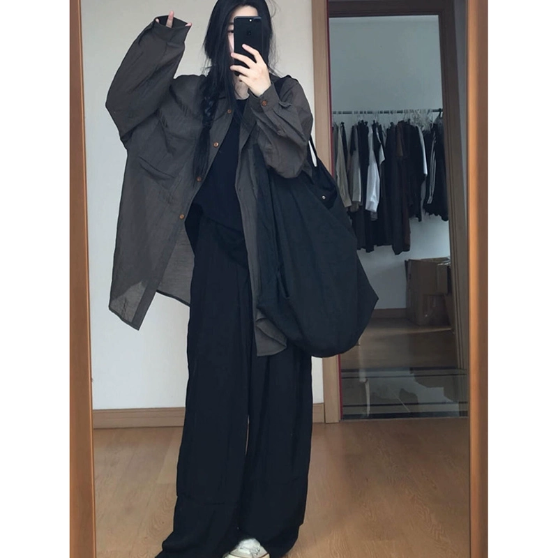 | nameOriginal | Ice silk gray long-sleeved loose layered sun protection shirt |